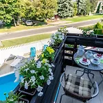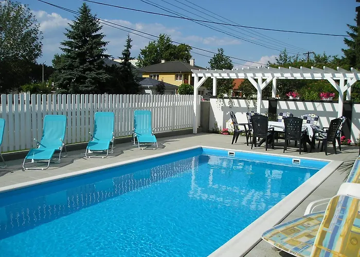 Das Hotel Haus Sonnenhof Siófok liegt rund 25 Gehminuten von der Statue des friedlichen Engels entfernt und bietet eine Terrasse mit einem Swimmingpool. Das Galerius Erlebnisbad und Wellness-Center bietet entspannende Rückzugsmöglichkeiten und befindet sich 3 km vom Hotel, das unter anderem nicht weit entfernt vom Balaton liegt.